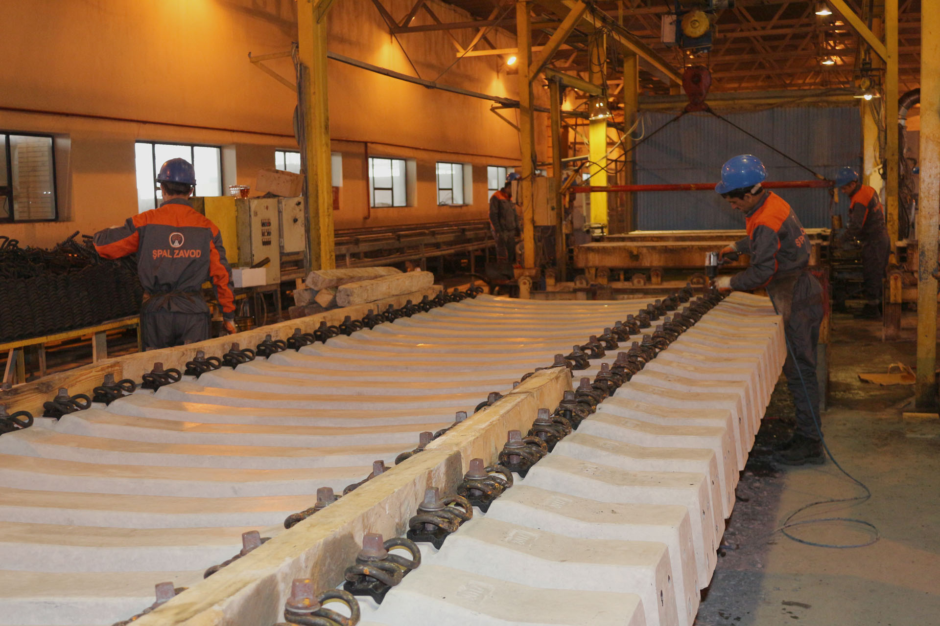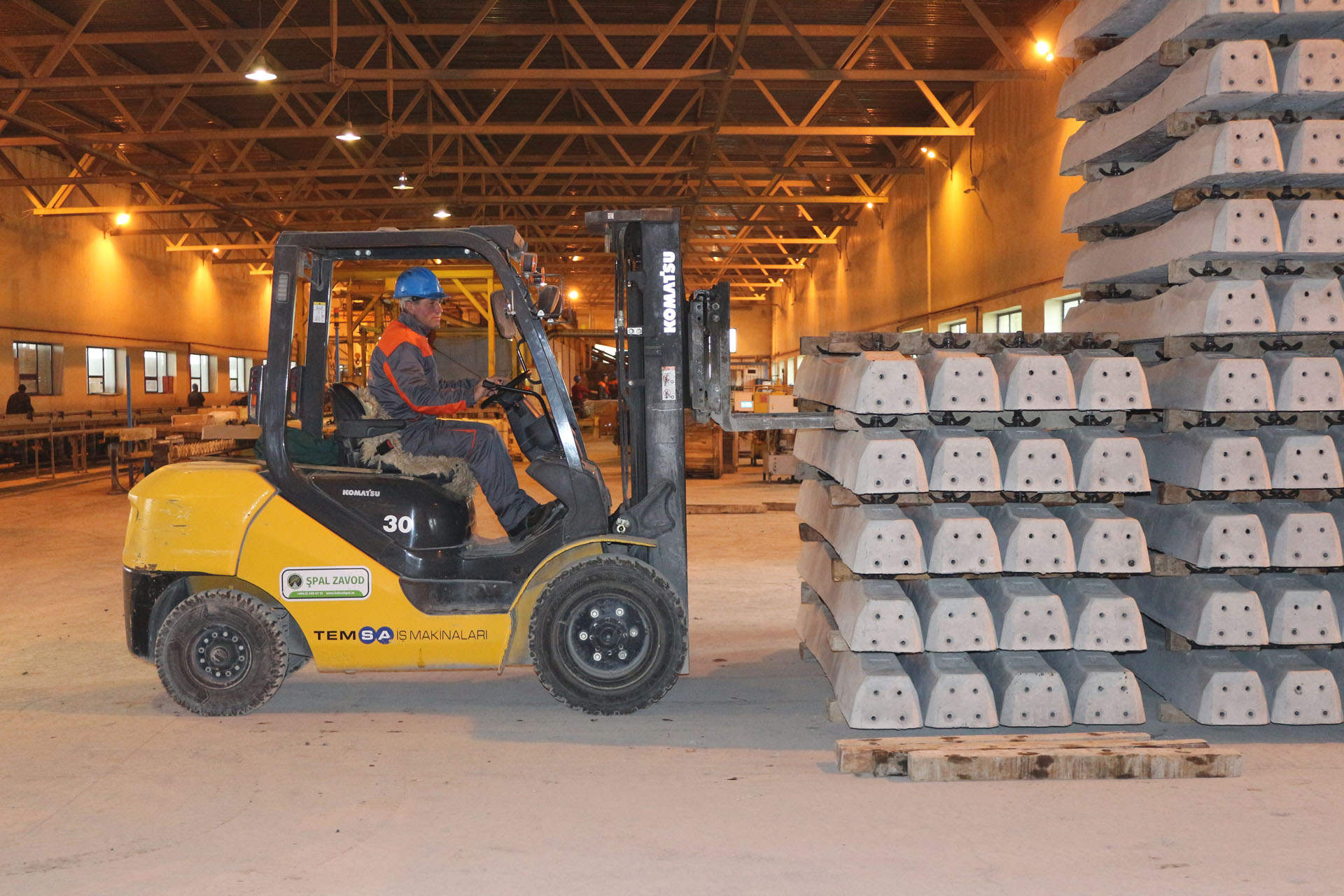 200-ə yaxın əməkdaşı olan Şpal zavodun illik istehsal gücü 511 000 ədəd B70 tipli dəmir-beton şpaldan, 120 dəst yolayrıcı dəmir-beton şpaldan ibarətdir. Bu isə il ərzində 270 km-ə yaxın yeni dəmiryolu tikintisi üçün şpal ehtiyacının ödənilməsi deməkdir. Dəmir-beton Şpalların istehsalında əsasən yerli xammaldan istifadə olunur, yalnız xüsusi gərginliyə malik olan metal məmulatlar Almaniyadan gətirilir. Dəmir-beton şpalların bağlayıcıları Almaniyanın Vossloh şirkətinə məxsus System W21 bağlayıcılarıdır. Şpal zavodda istehsal edilmiş məhsulun nümunələri Avropanın tanınmış laboratoriyası olan Almaniyanın Bautest GmbH labaratoriyasından sınaqdan uğurla çıxmışdır.